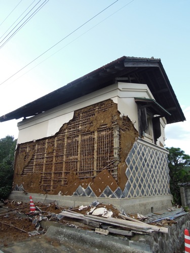 結構壁がはがれて中の土壁が見えています。
