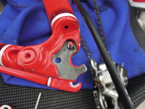 水石山で転んでハンガーがやっぱり曲がって居るみたいです。
