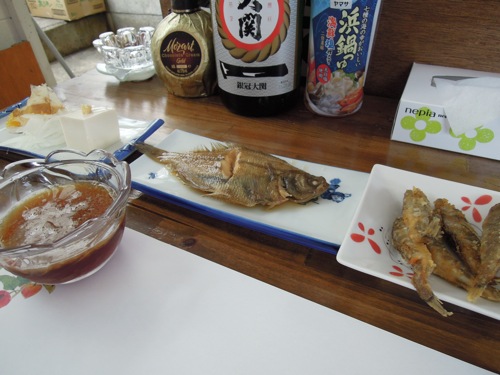 入ると煮魚とメヒカリの唐揚げがもう並べてありました。