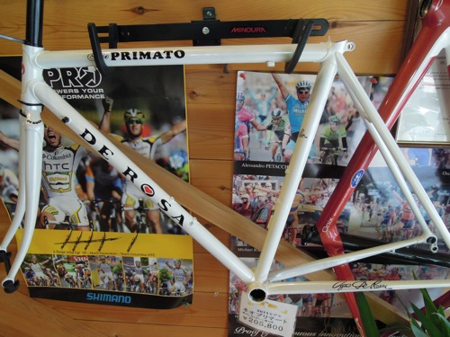 今のカーボンのフレームは部品を組み付けるだけですが、クロモリはBBをさらったりいろいろ手が掛かるので、自転車らしい?などいろいろ話してきました。