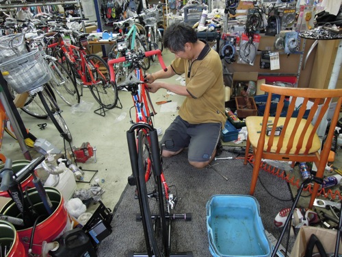 来ていたお客さんの自転車もブルックスのサドルで渋いですね。(^_^)