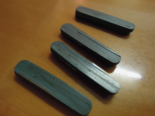 外したブレーキシューには金属がかんでいました。前に掃除したのですがまた付いたのですね。