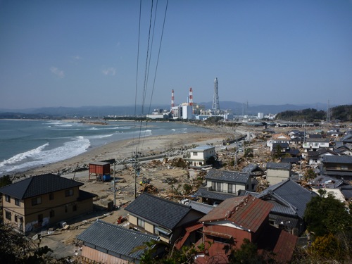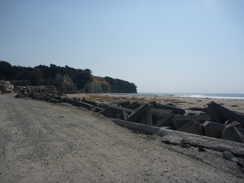 海岸線を走ってきたら、話には聞いていたけど、堤防が津波で流されて道路から見えなかった海が見えるようになっていました。