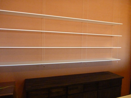 前に紹介したつくばのカフェレストランですが、地震でどうだったのか聞いてみたら、丁度カップを棚に並べたのですが、棚がワイヤーで釣っている構造なので、一つも落ちなかったと言うことです。