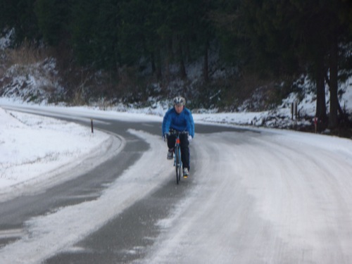 道が凍っていました。