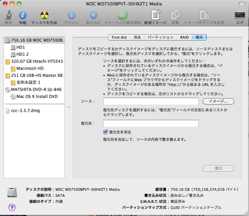 ディスクユーティリティーの復元の機能を使うと言うことです。