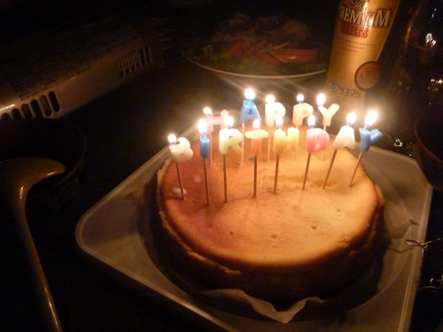 みーさんの誕生日イブなので焼いてきたチーズケーキに蝋燭