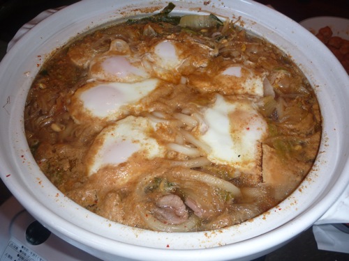 昨日の残りの鍋も勿体ないので朝飯に・・・