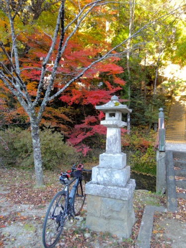 途中介護の人たちが紅葉を観て居たので、停まってみたら神社があり紅葉が綺麗でした。