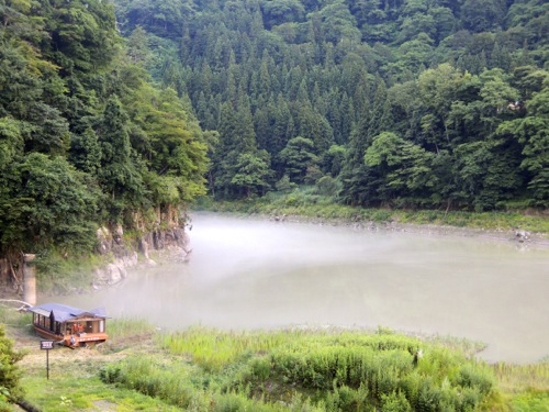 まだ誰も起きて無くてシーンとしていたんだけれども、外に出てみたら、濃い霧がかかっていて昨日の大蛇退治の話しのような景色でした。
