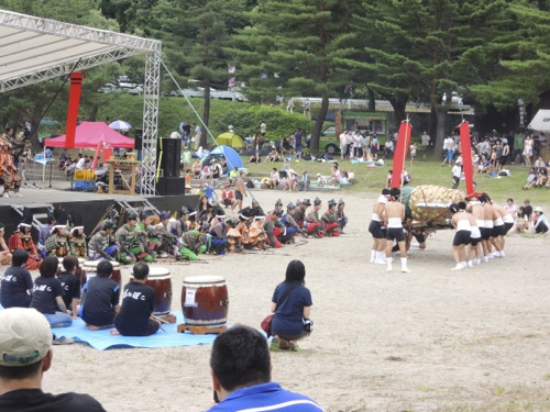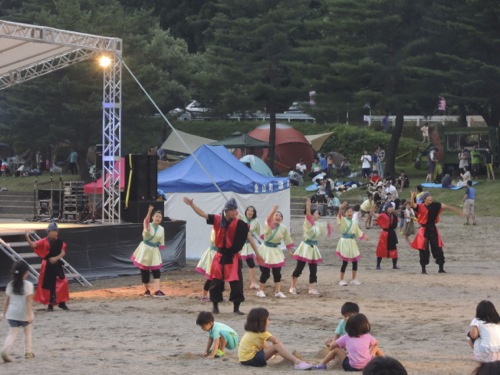 花火までは時間があったので、ステージのおどりや太鼓などを見て花火を待っていました。