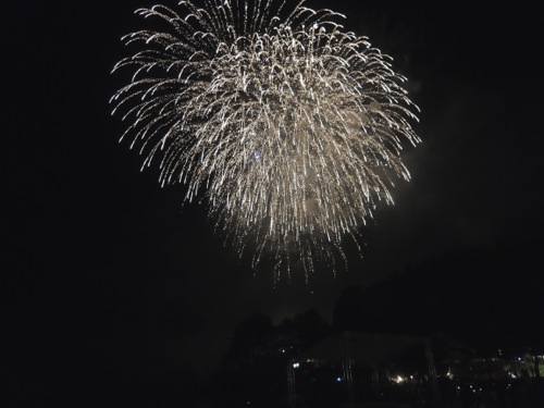 今年は、最初に挙げる花火が有名な人のということだったので、間に合うように行きたかったのですが、自転車で向かう途中に上がってしまいました。
