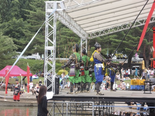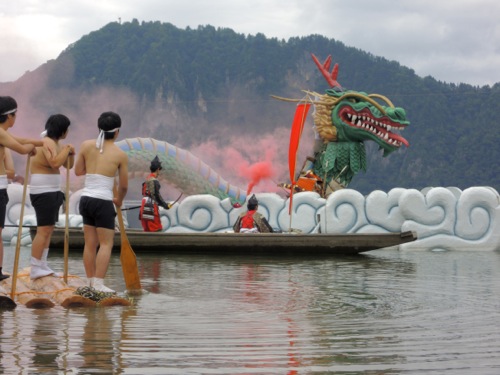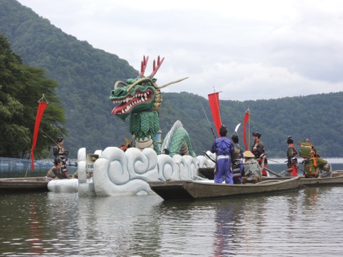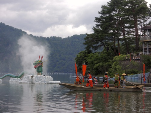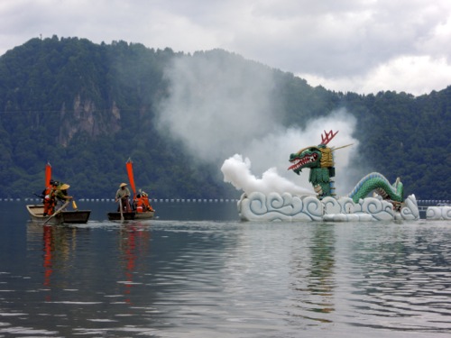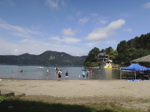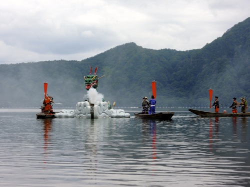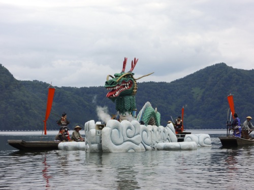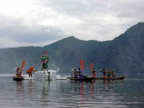 水着も持ってきていたので湖水浴をして、 1時からの大蛇退治のショーを待まちました。