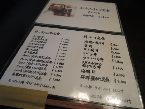 ランチでマグロのメンチカツ限定というのもあったのですけれども、せっかくなので刺身がおいしいと思い、刺身と天ぷらの定食にしました。