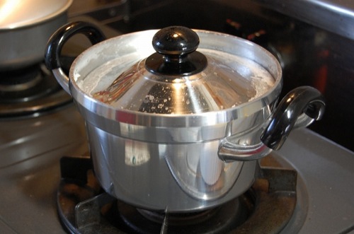 5分たったら、ガスの火を最小のとろ火にする(5分)