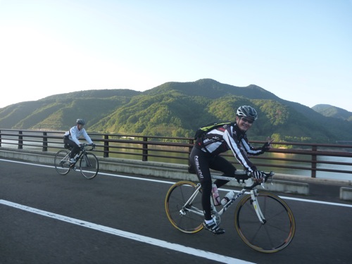 下る途中にキャンピングのサイクリスが居ました(^_^)