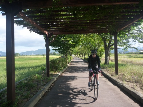 ききょうやさんの先導でサイクリングロードを通って高畠ワイナリーに向かいます。