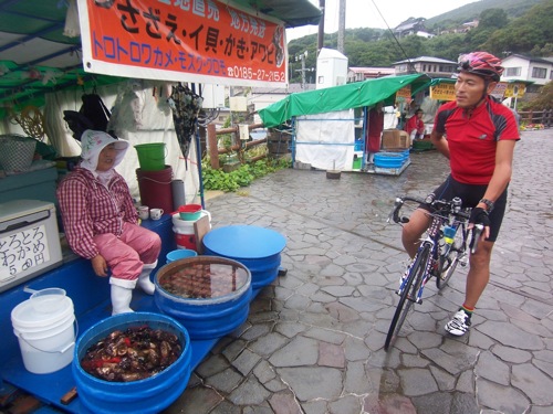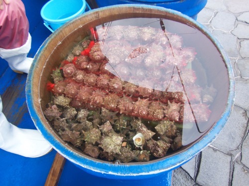 おばさんが貝を売っていました。