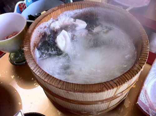 焼いた石が入って沸騰していました。