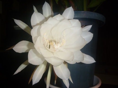 何かあったのかなと急いで行くと、「月下美人が咲いたので写真を撮ってくれ」と言うことだった(^_^;