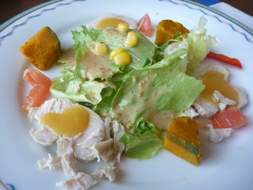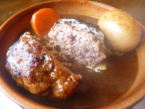 前菜のサラダが出て、煮込みハンバーグ
