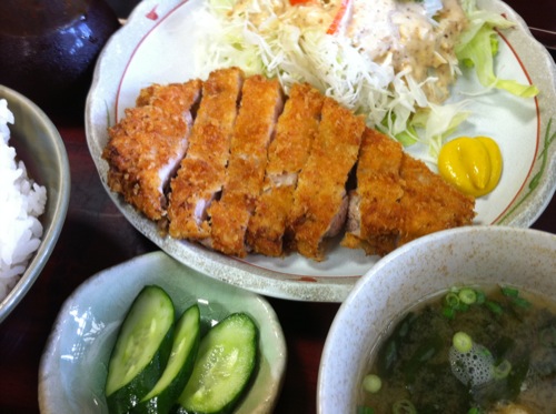 何を食べるか迷って、トンカツ定食にしました。