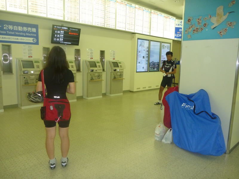 自転車を輪行袋に入れてチケットを買いに(^_^)