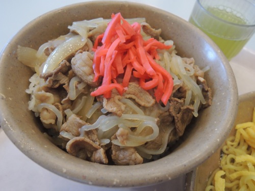 Oさんは牛丼と冷やし中華を持って来ました。