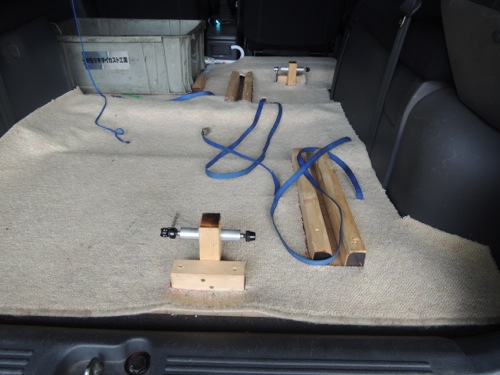 車の後ろのウイングの上にすべり止めシートを敷きその上にガラスのコップを置きそれが落ちるかどうかを競っていたのです