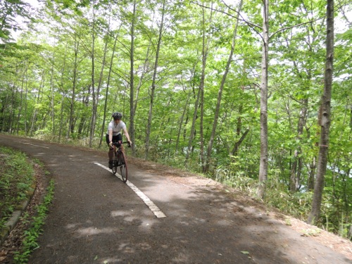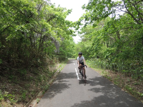 サイクリングコースをのんびり走ります。