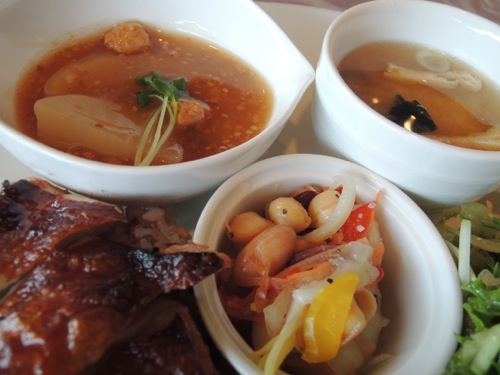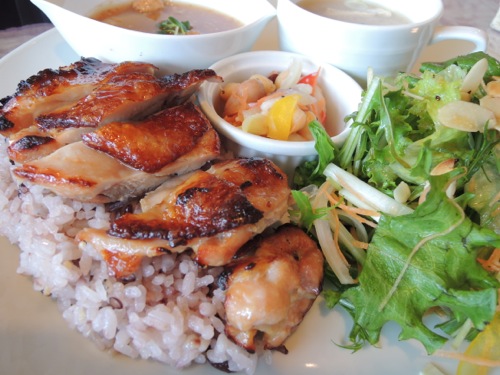 ランチは基本的に3つで鶏肉の味噌漬けの焼いたのとカレーとドリアだったよ。