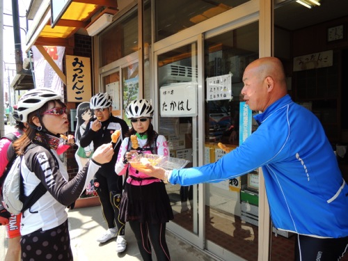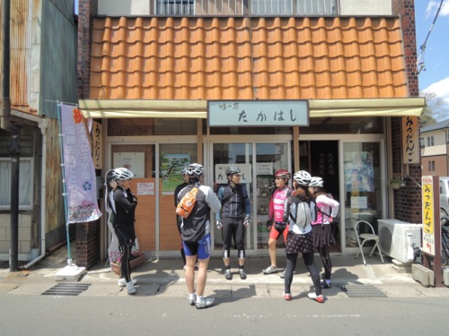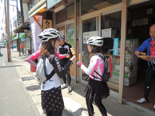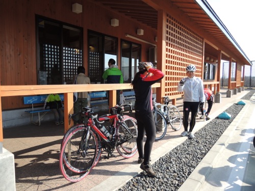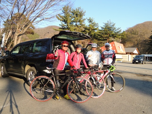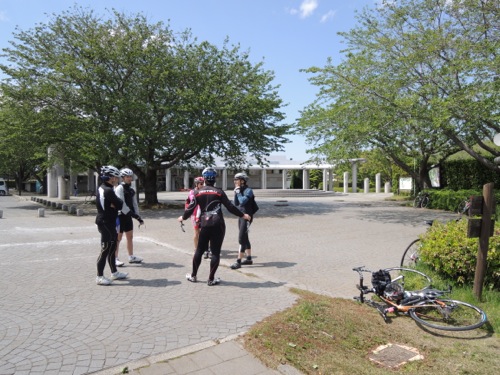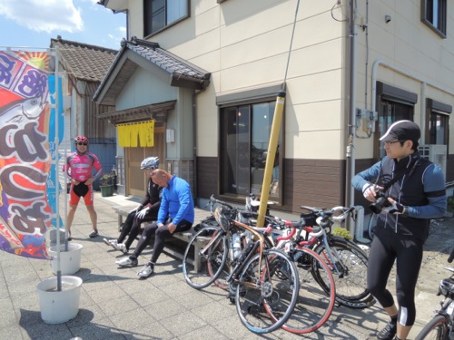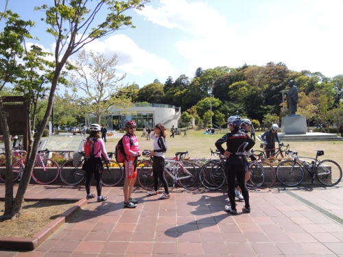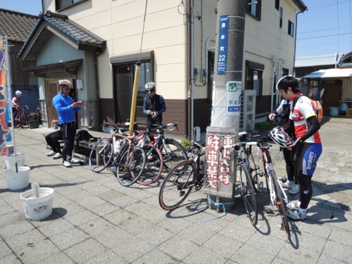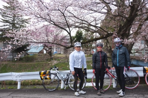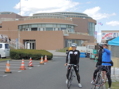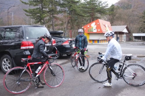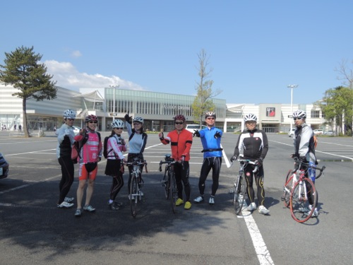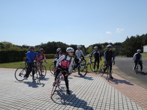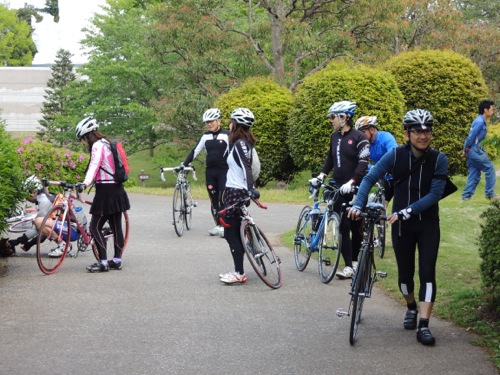 集合はその少し手前で女性のローディーが交差点で止まってました。