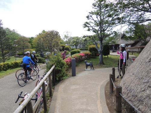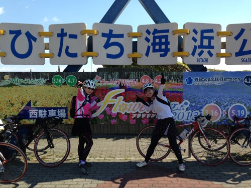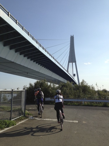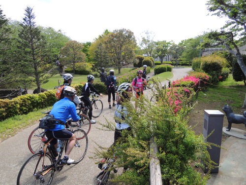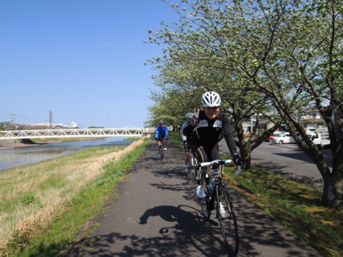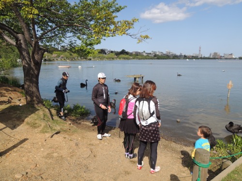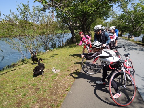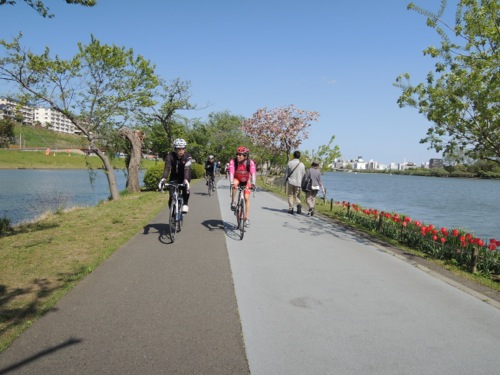 サイクリングロードを通って千波湖へ向かいます。