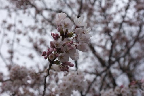 中学生たちが先生と一緒に大人数で花見に来ていたけども寒そうでした。