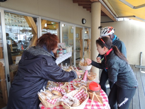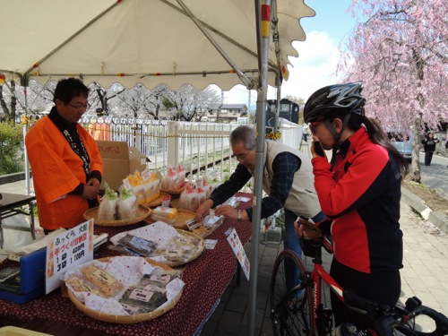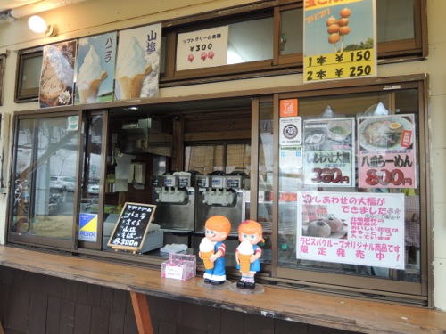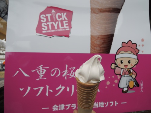 ソフトクリームも八重の桜に便乗してさくら味のソフトクリームがありました。ソフトクリームを食べたのだけどコージーさんとソフトクリームも八重の桜に便乗してさくら味のソフトクリームがあったよ。「寒いのに本当に食べてる」て言われてしまいました。(^^;