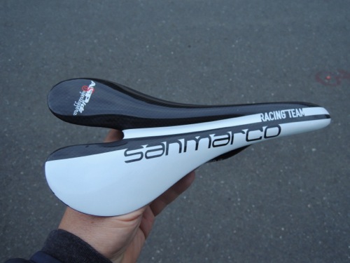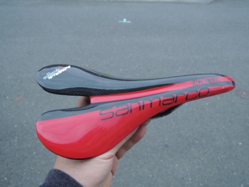 俺ちゃんが、SANMARCOのカーボンのサドルを二つ見せてもらいました。