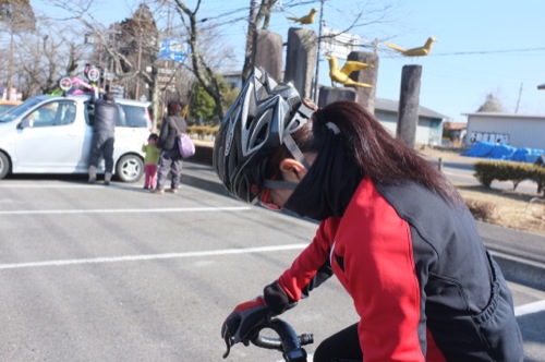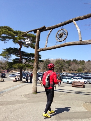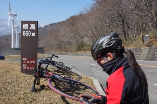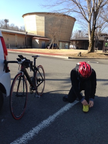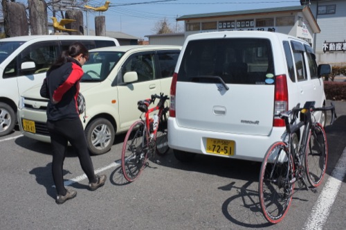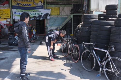 自転車のバルブが折れたとかで車で来たそうです。
