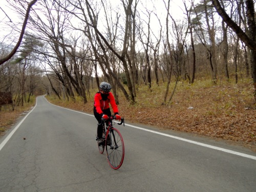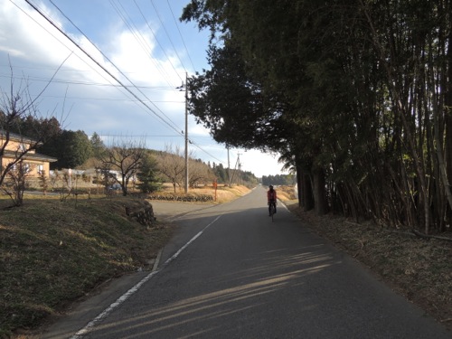 風を避けて山あいの道を走ります。