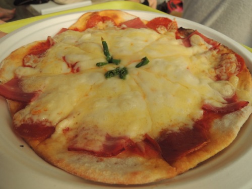 石窯焼き?のピザを食べながら観ました。