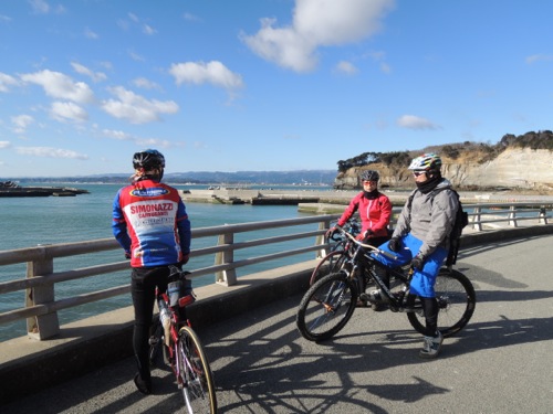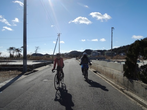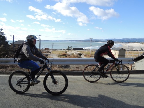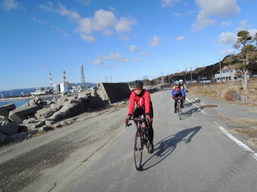 被災した岩間海岸を走ります。