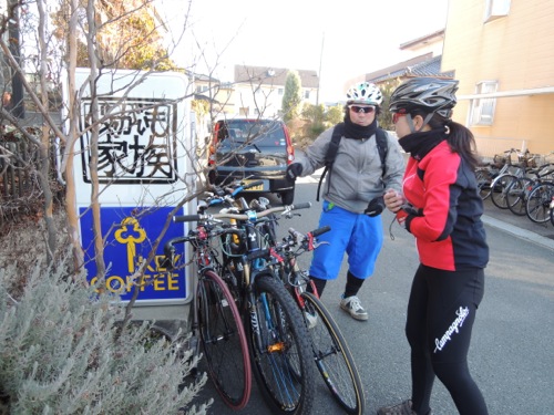 泊まらないで帰ったTOYBOXさんが輪行で到着(^^)