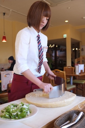 その場でチーズを削ってサラダに載せてくれます。