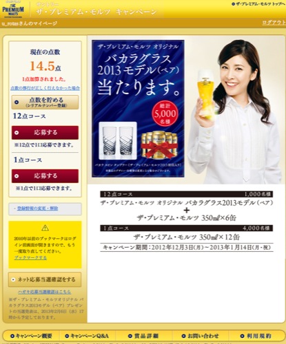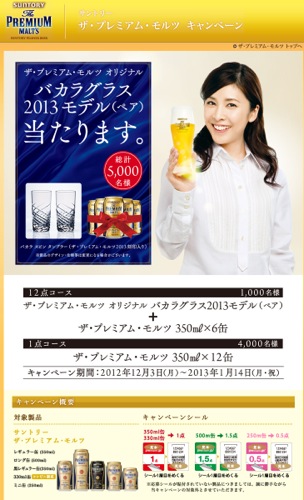 プレミアムモルツでバカラのグラスが当たるキャンペーンをやっています。