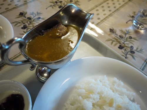 大正時代(初期)のレシピを基に再現されたレトロな味わいのカレーです。甘みがあり、若干の酸味を感じ、辛みが残る中辛口カレーです。