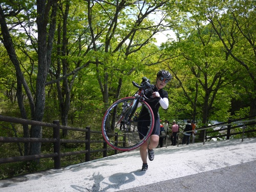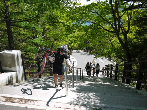 歩道を通って上の道へいけるので自転車をもっていくことに