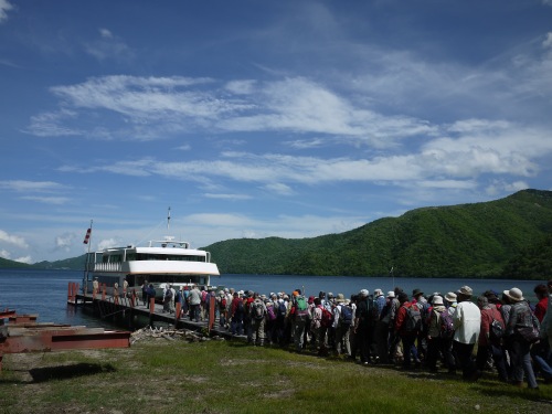 多分反対側をハイキングで歩いて来た人たちだと思うのですが船に乗船するのに並んでいました。
